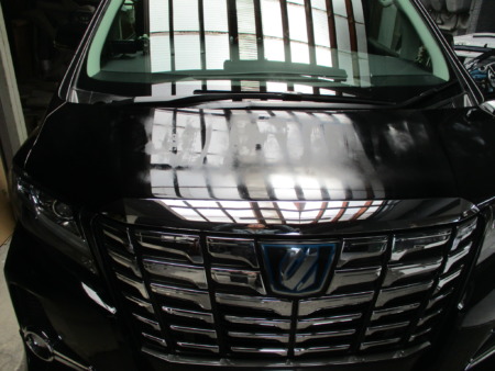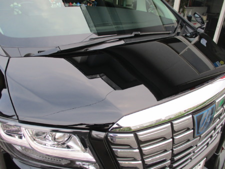 今回ご紹介するのは、トヨタ アルファードHEVのボンネットの再補修修理塗装事例をご紹介いたします。中古車で購入したとのことで、おそらく修理塗装していた箇所が、塗装不具合で劣化して表面に現れたのだと思います。クリヤーに艶がなく、剥がれも発生しているので作業を進めていきます。