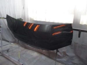 サフェー処理が終わったら、塗装していきます。乾燥後、磨きをかけパーツを付けてボンネットを戻します。