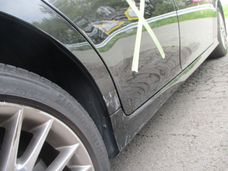 今回ご紹介するのは、レクサス GS350の右側リアドア、アウターパネル、サイドシルガーニッシュ、リアバンパーのキズ補修修理塗装事例をご紹介いたします。リアドア、サイドシルガーニッシュ、リアバンパーは新品パーツにて対応いたします。