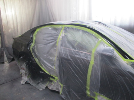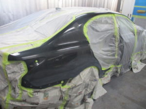 塗装ブースに移動してマスキングしていき塗装開始です。