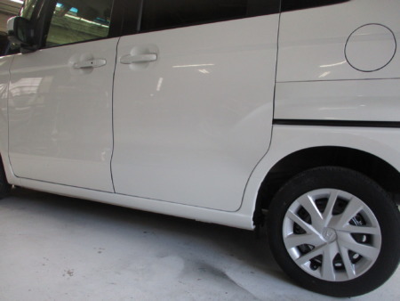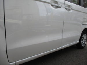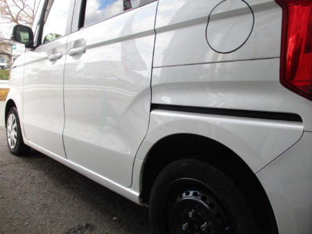 今回ご紹介するのはホンダ N BOXの左側スライドドア、リアサイドアウタパネルの鈑金補修塗装修理事例をご紹介いたします。